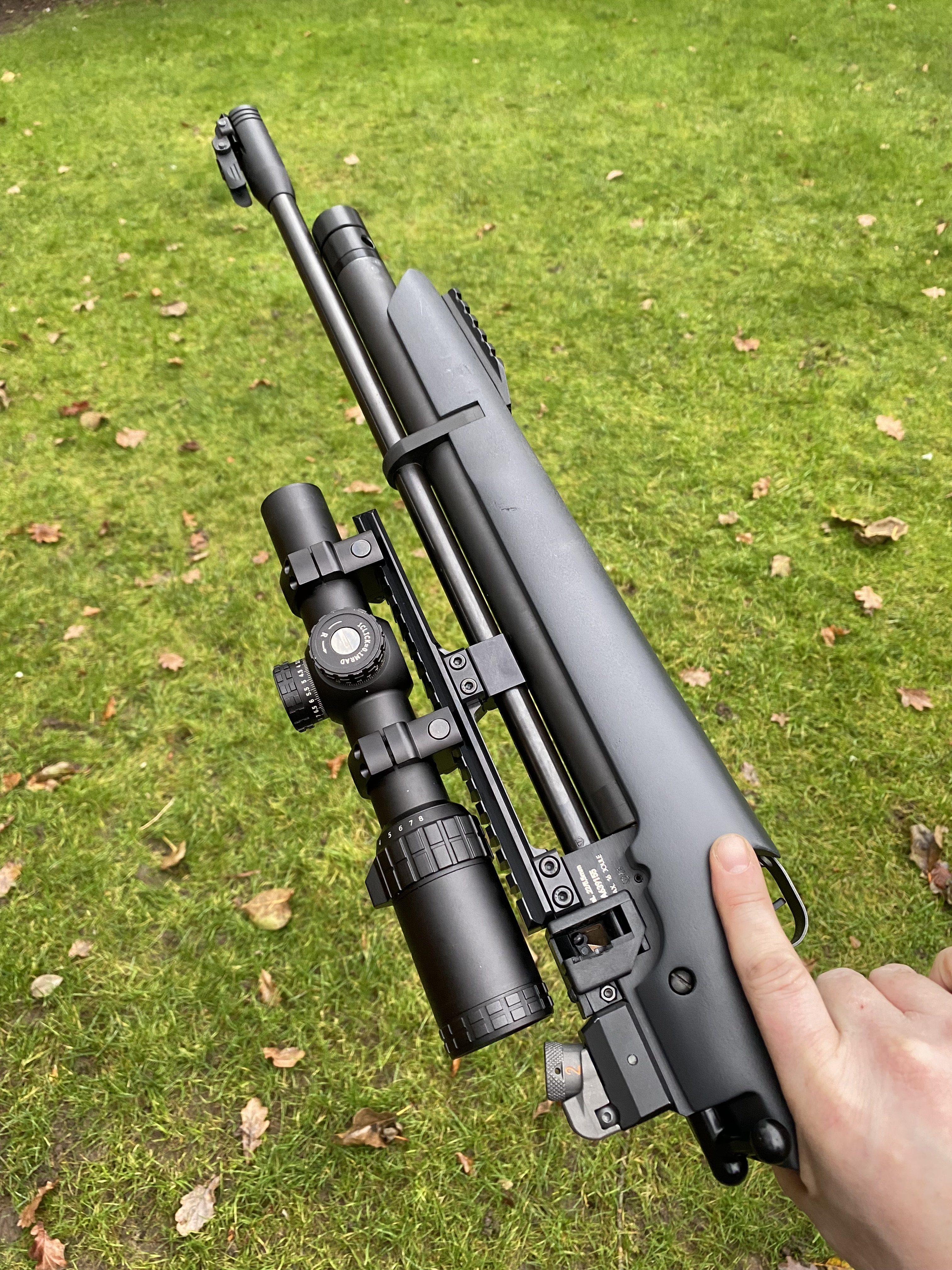 You’ve put some work in to that mate, very, very nice. Just messaged some one about a mk2 but he’s not prepared to post or meet. So will have to keep looking.The stock is just rattle can , the cylinder since that picture has been upgraded with a complete Altaros set up , lightweight tube , quick fill & reg . The Picatinny rail is made by Brittania .