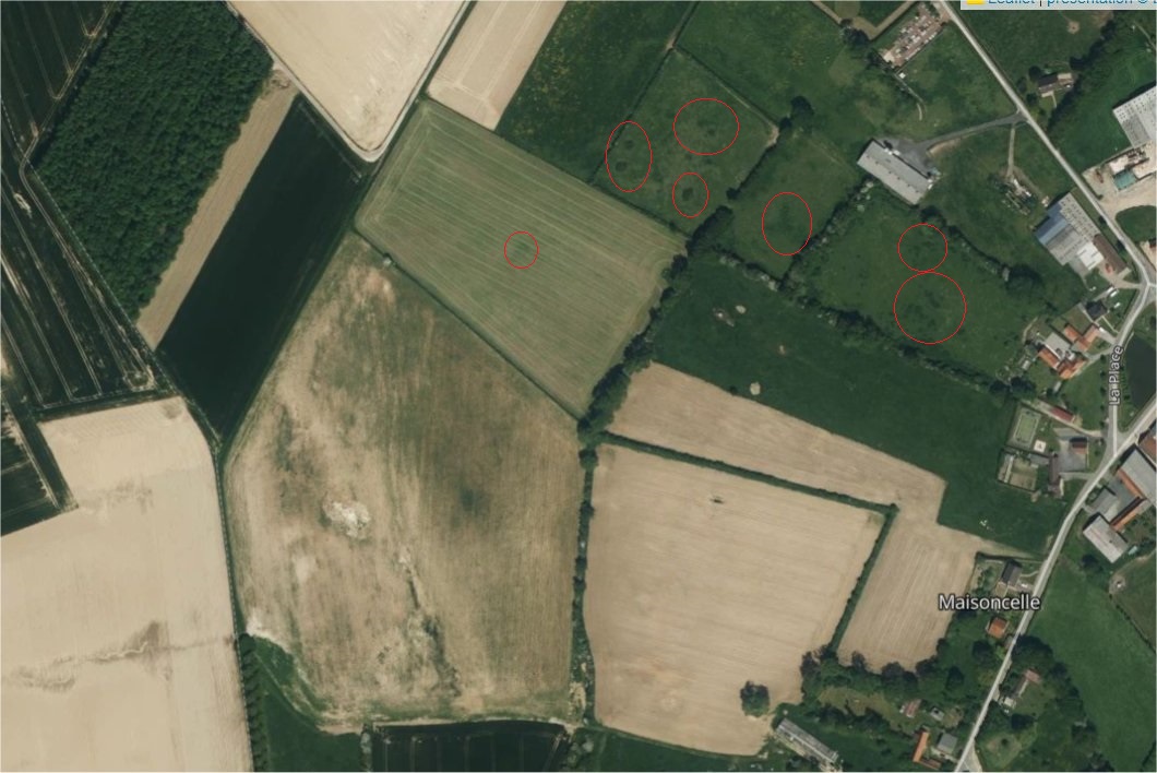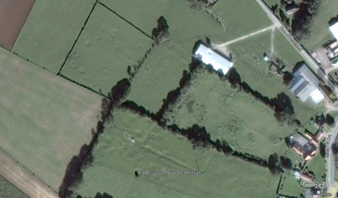 The V1 site is just north of Maisoncelle and not in my proposed battlefield but bombs could have hit. Judging by the craters they are not big bombs. It does however discount the French attacking the English from the east so my battle direction has to be wrong.Having a rummage around online for WW2 activity in the area and I've turned up something that will explain a lot of the soil disturbances right on your site unfortunately ...
