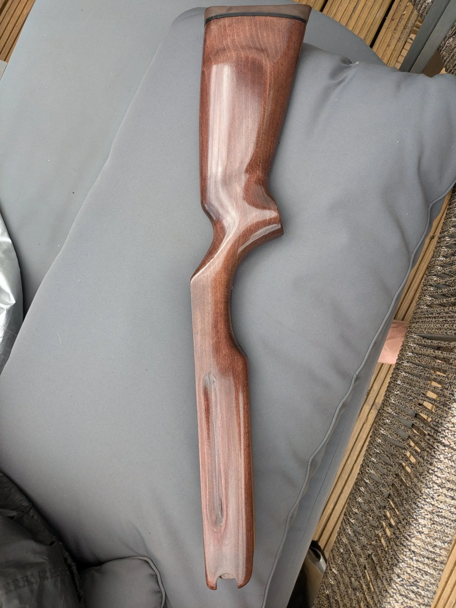 Cheers Chris. How much of a gap in grit would you say between majority of stock and end grain? I've got 600/800/1000/1200/1500 paperA pre -stain conditioner application prior to staining & sand end grain( front of pistol grip/ fore end tip) to a finer grit than the rest of the stock's final sanding. Both of these will lessen " blotchiness" that Beech is famous for & keep end grain more even & in line with the rest of the stock's stain color.