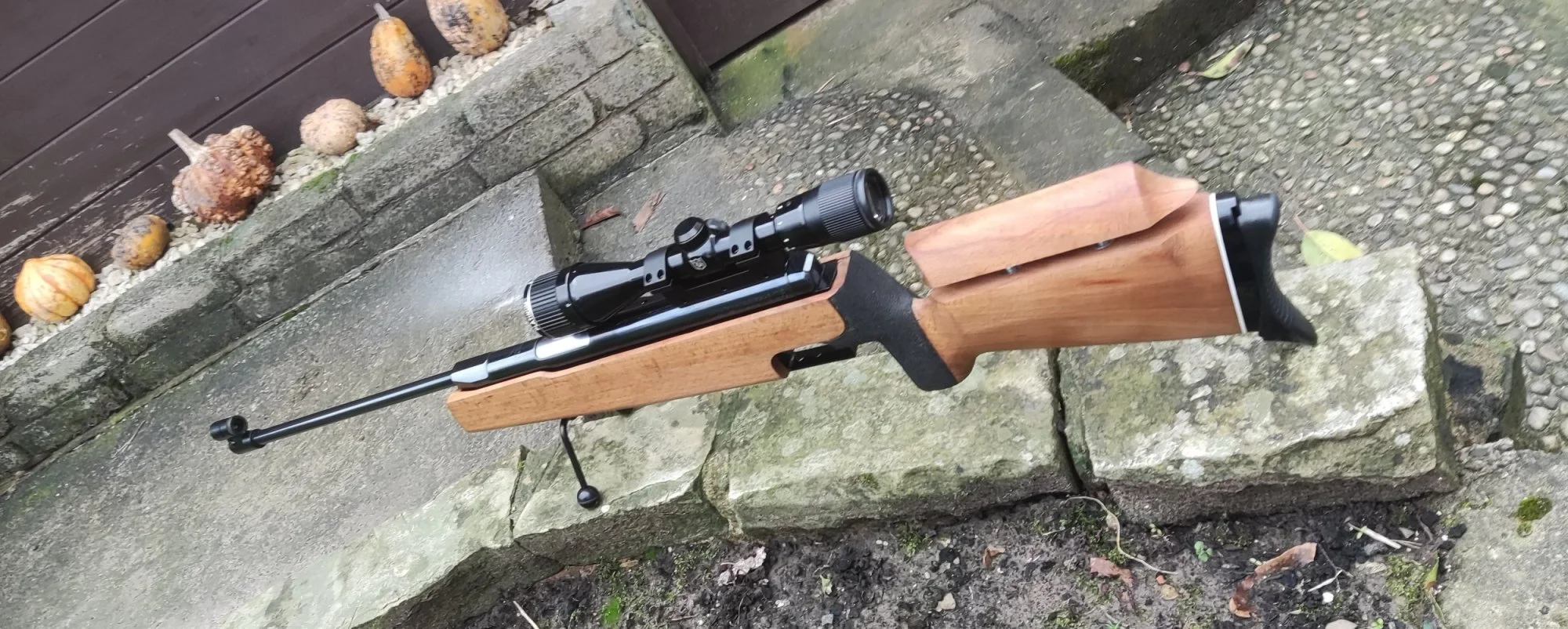 Straight cut with thumbscrew adjusters, always liked the straight look on the Walther LG stocks, and always thought it would look nicer than the curved 300SU stock risers.