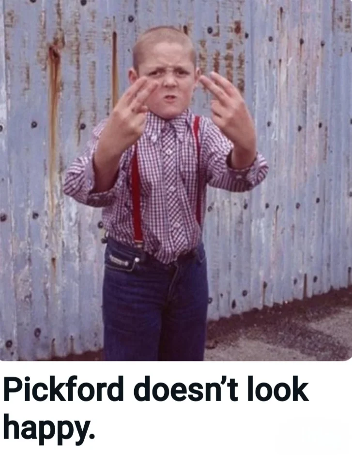 Good onePickford, to me, looks like if he wasn't a keeper he could have been a main character in Grange Hill.